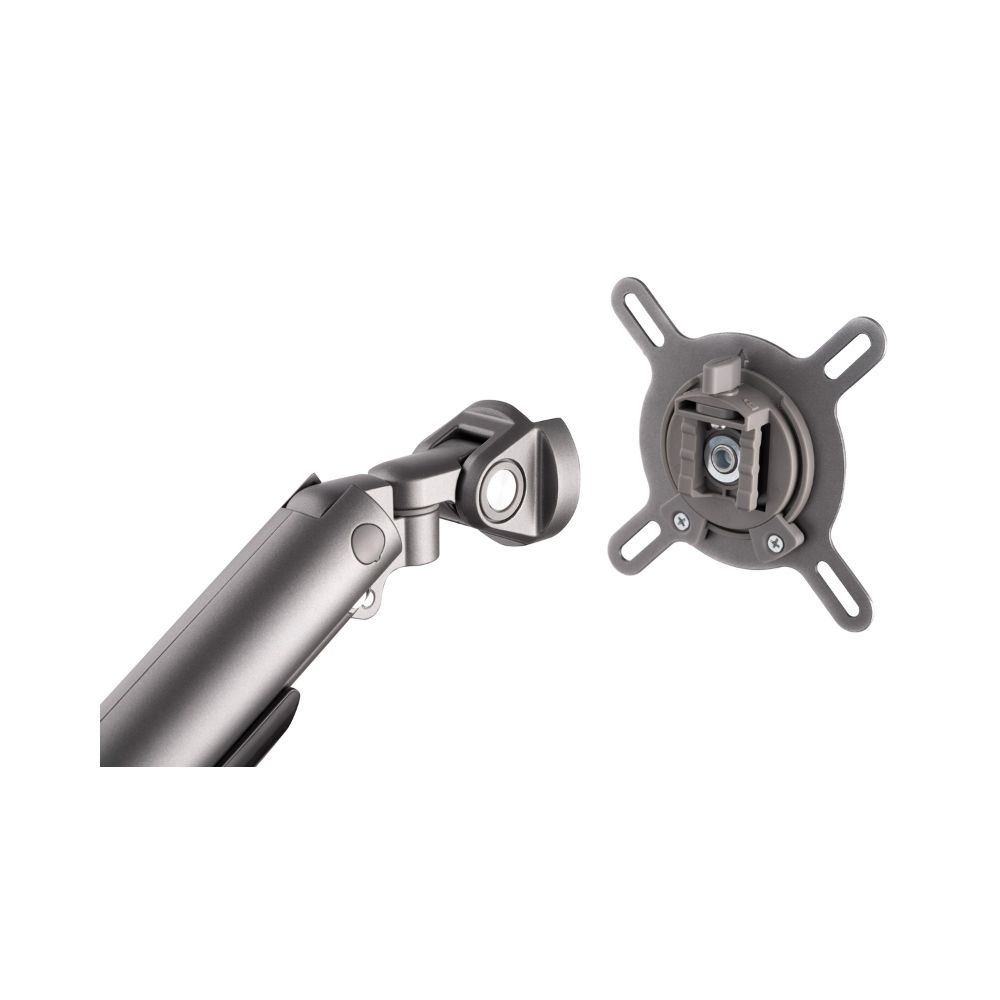 Qolun maksimal uzantısı təxminən 479 mm-dir, bu isə monitoru masadan kənara doğru irəli çəkməyə şərait yaradır. Montaj sistemi həm klips, həm də vidalı üsulla bərkidilə bilir: klips üçün masa qalınlığı 10–80 mm, vintlə bərkidilmə üçün isə 10–70 mm arasında olmalıdır. Ümumi ölçüləri 118 × 555 × 604 mm təşkil edir.