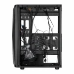 Ön paneldə 2×USB 2.0, 1×USB 3.0, həmçinin HD Audio + MIC portları yerləşir. Korpusun materialı temperli şüşə, metalplastik elementlərdən ibarətdir. Daxili yer 165 mm-ə qədər CPU kuler və 300 mm-ə qədər VGA kartlarını dəstəkləyir. Qara rəngli, 5.4 kq çəkili bu model həm vizual baxımdan estetik, həm də texniki cəhətdən sabitlik və hava dövranı təmin edir — yüksək performanslı oyun sistemləri üçün ideal seçimdir.