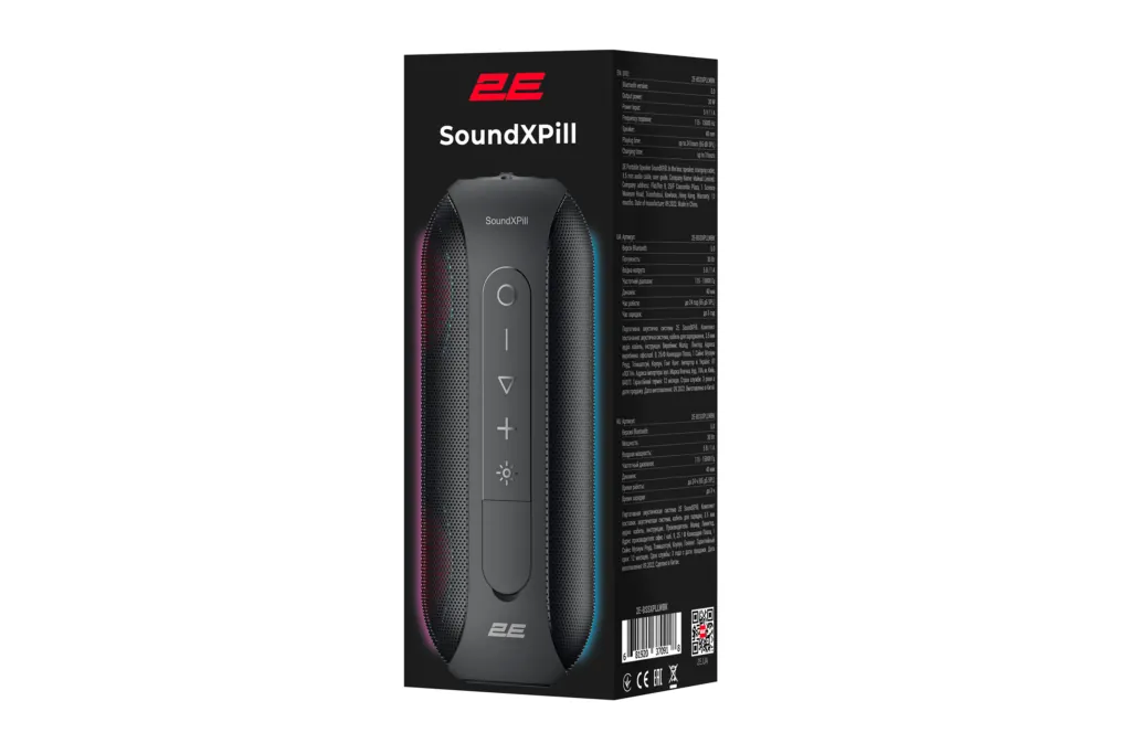 2E Portable Speaker SoundXPill TWS, MP3, Wireless, Waterproof Black portativ səs sistemi gündəlik musiqi dinləmə, piknik, plaж və səyahətlər üçün nəzərdə tutulmuş yüksək performanslı dinamikdir. Bu cihaz Bluetooth 5.0 vasitəsilə telefon, planşet və digər uyğun cihazlarla simsiz qoşulur və TWS funksiyası ilə iki ədəd dinamik qoşub çox güclü stereo səs yarada bilərsiniz. 30 Vt (2×15 Vt) ümumi səs gücü və iki dinamik sayəsində səs çıxışı geniş və aydın olur ki, bu da həm evdə, həm də açıq havada dinləmə üçün əla performans təmin edir.