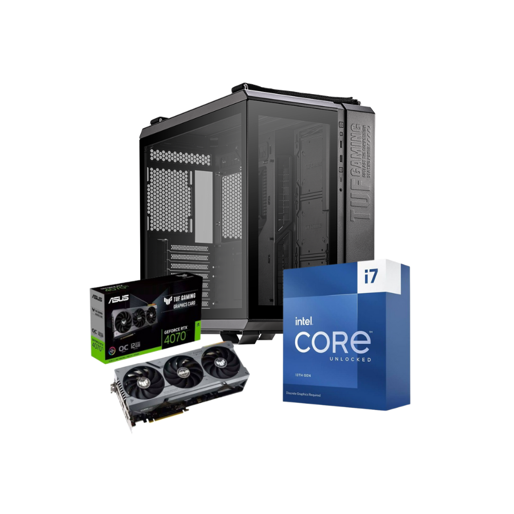 Intel Core i7-13700KF | Asus TUF Z690-Plus WiFi | RTX 4070 12GB | 32GB DDR5 6000MHz | 1TB NVMe SSD | Frozr-O II 360mm Liquid Cooler | Thor T750W V2 PSU | Asus TUF GT502 Case