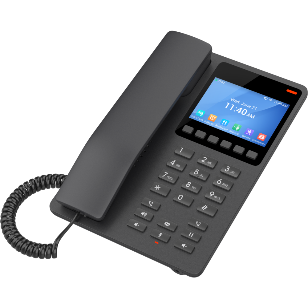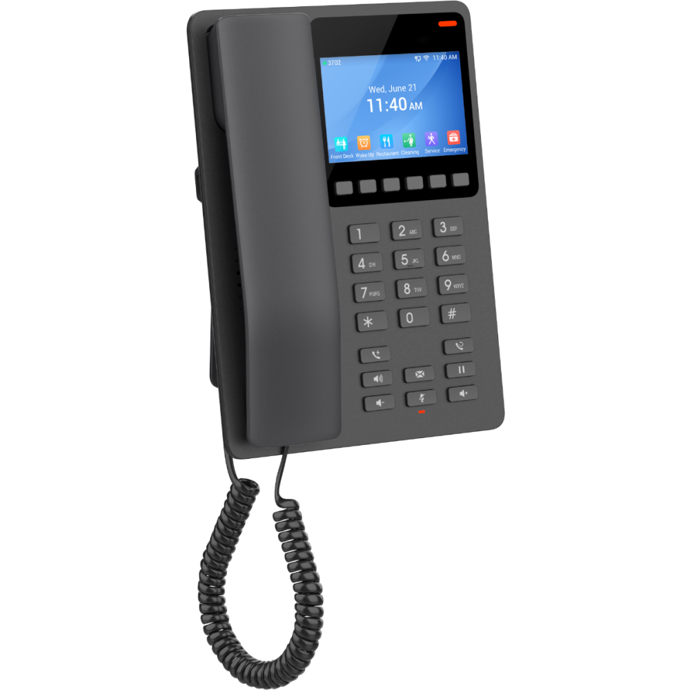 Grandstream GHP631 Compact Hotel Phone — müasir otellər, qonaq evləri və istirahət obyektləri üçün nəzərdə tutulmuş, funksional və zərif dizaynlı IP telefon modelidir. Bu cihaz qonaqların rahat və effektiv ünsiyyətini təmin etməklə yanaşı, idarəçilərə sadə və mərkəzləşdirilmiş nəzarət imkanı yaradır.