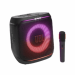 100 W RMS | JBL Pro Sound | Rəngli işıq şousu | Simsiz mikrofon | Bluetooth + USB + AUX | IPX4 suya davamlı | 10 saat batareya | TWS qoşulma