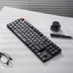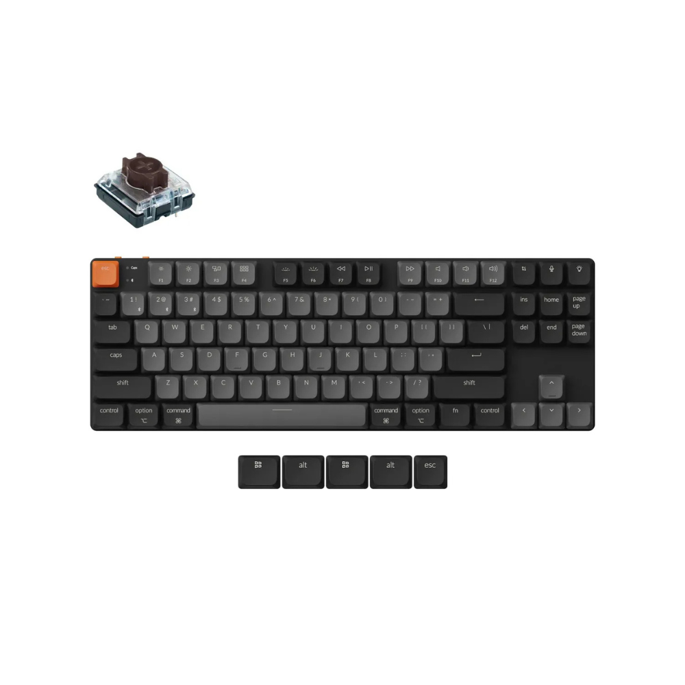 Keychron K1 (Version 6) mexaniki klaviatura həm oyun, həm gündəlik yazı, həm də peşəkar iş üçün balanslı performans təklif edir. Bu model Brown switch’lərlə təchiz olunub ki, bu switch növü tactile (toxunuş geribildirimi) hissi verir — yəni hər düymə basıldıqda kiçik bir “tactile bump” hiss olunur. Bu, həm yazı sürətini artırır, həm də əmrlərin daha dəqiq yerinə yetirilməsinə kömək edir, ancaq səs səviyyəsi hələ də sakit qalır — beləliklə həm gecə yazıları, həm də sakit oyun şəraitləri üçün uyğundur.