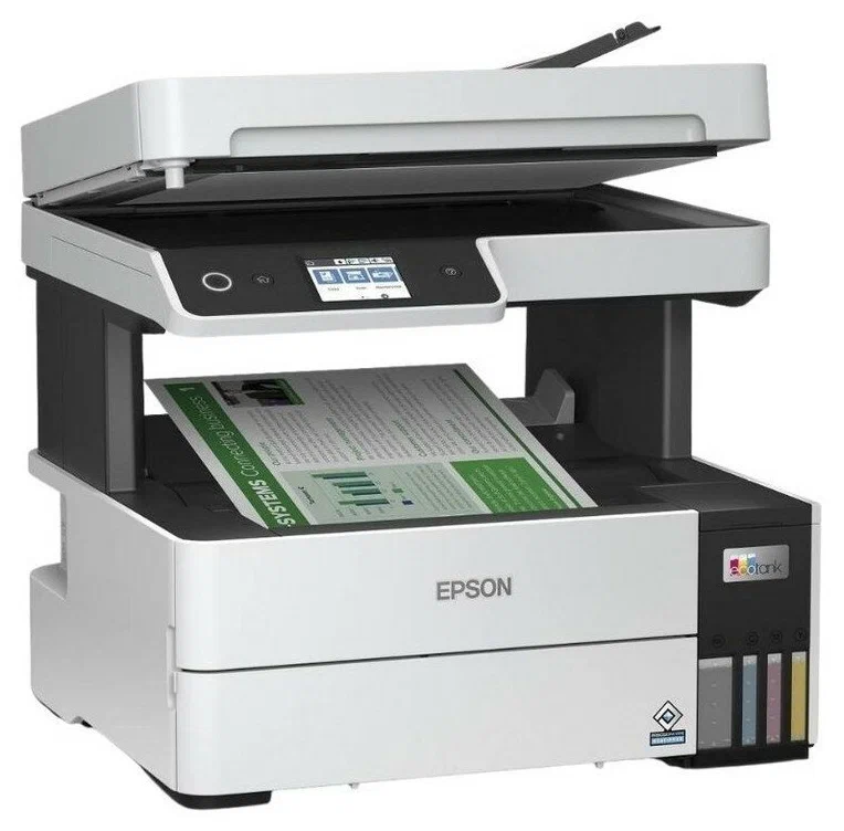 A4 Rəngli Inkjet MFP | Print / Scan / Copy / Fax | 4 rəngli piqment mürəkkəb | 4800×1200 dpi | 17 ipm (B/W) | 9.5 ipm (Color) | 35 vərəq ADF | 250 vərəq giriş | Wi-Fi | Ethernet | USB | 6.1″ rəngli LCD