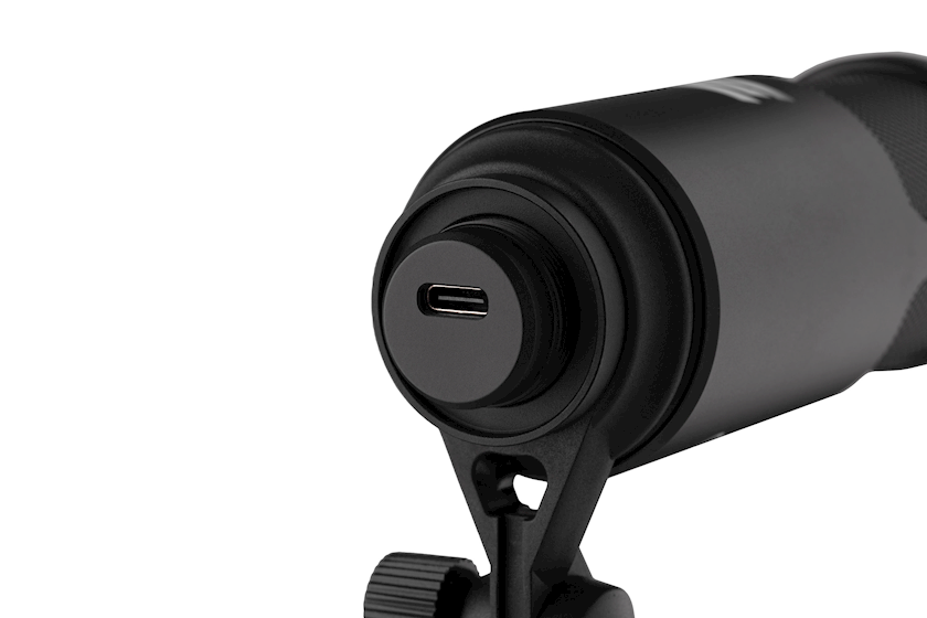 Qurğunun korpusunda səs gücünü (gain) tənzimləmək üçün fiziki düymə yerləşdirilib. Metal tripod ayaq, tənzimlənən bucaq və 2 metrlik USB kabel isə mikrofonu daha funksional edir. Portativ və yığcam dizaynı onu masada rahat yerləşdirməyə imkan verir.