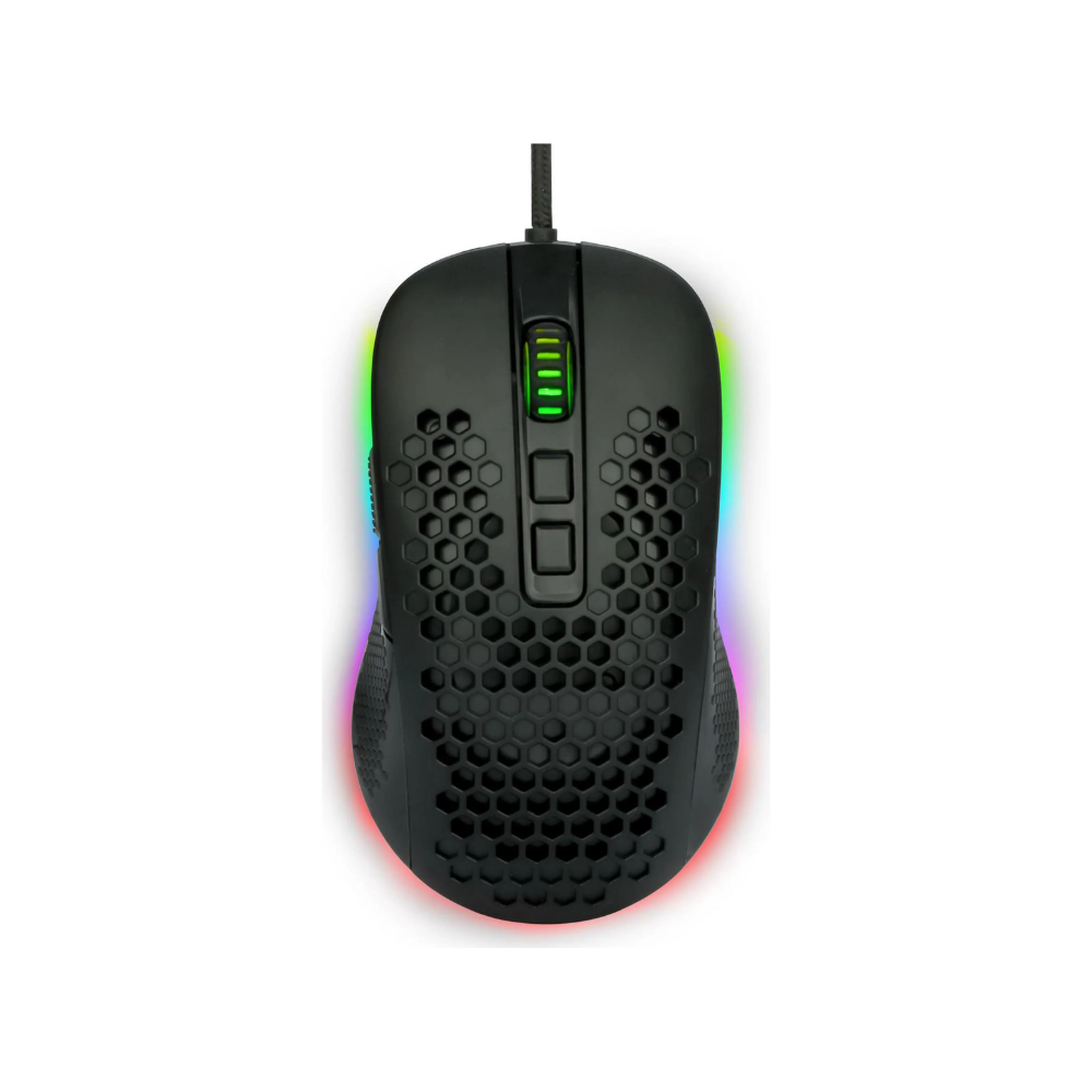 6400 DPI Sunplus 199 optik sensor, 7 düymə | USB, RGB işıq, 1.5 m örgülü kabel, 3 milyon klik ömrü.
