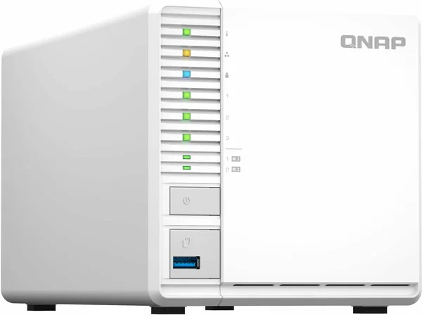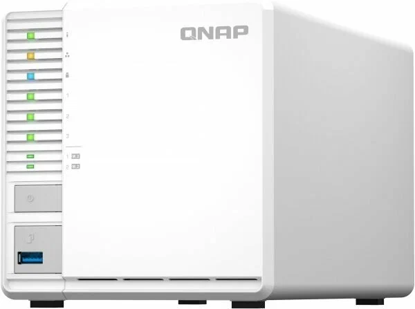NAS-da 3 ədəd 3.5″/2.5″ SATA 6 Gb/s yuva mövcuddur ki, bunlar həm HDD, həm də SSD ilə işləyə bilir və hot-swappable dəstəyi var. Əlavə olaraq, 2 ədəd M.2 2280 PCIe Gen3 x2 slotu SSD keşləmə və ya əlavə saxlama məqsədi ilə istifadə edilə bilər. Şəbəkə bağlantısı üçün cihazda 1 ədəd 2.5 GbE RJ-45 portu mövcuddur ki, bu da ənənəvi Gigabit Ethernet ilə müqayisədə 2.5 dəfə daha sürətli məlumat ötürülməsi imkanı yaradır. Əlavə olaraq, 2 × USB 3.2 Gen 2 və 1 × USB 3.2 Gen 1 portu xarici cihazların qoşulmasını dəstəkləyir. HDMI 1.4b çıxışı vasitəsilə isə cihaz birbaşa monitor və ya televizora qoşularaq 4K @30Hz görüntü təqdim edə bilir.