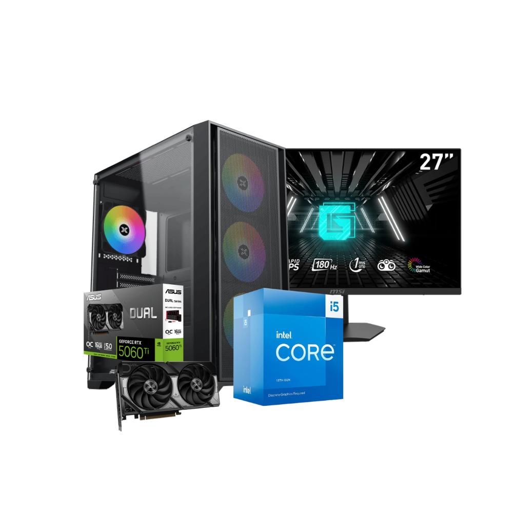 Intel Core i5-13400 | RTX 5060Ti 16GB | MSI B760M-E DDR5 | T-FORCE 16GB DDR5 | 1TB M.2 SSD | MSI MAG A650 650W | DeepCool AG400 | Xigmatek Gaming X II | MSI G274F Gaming Monitor