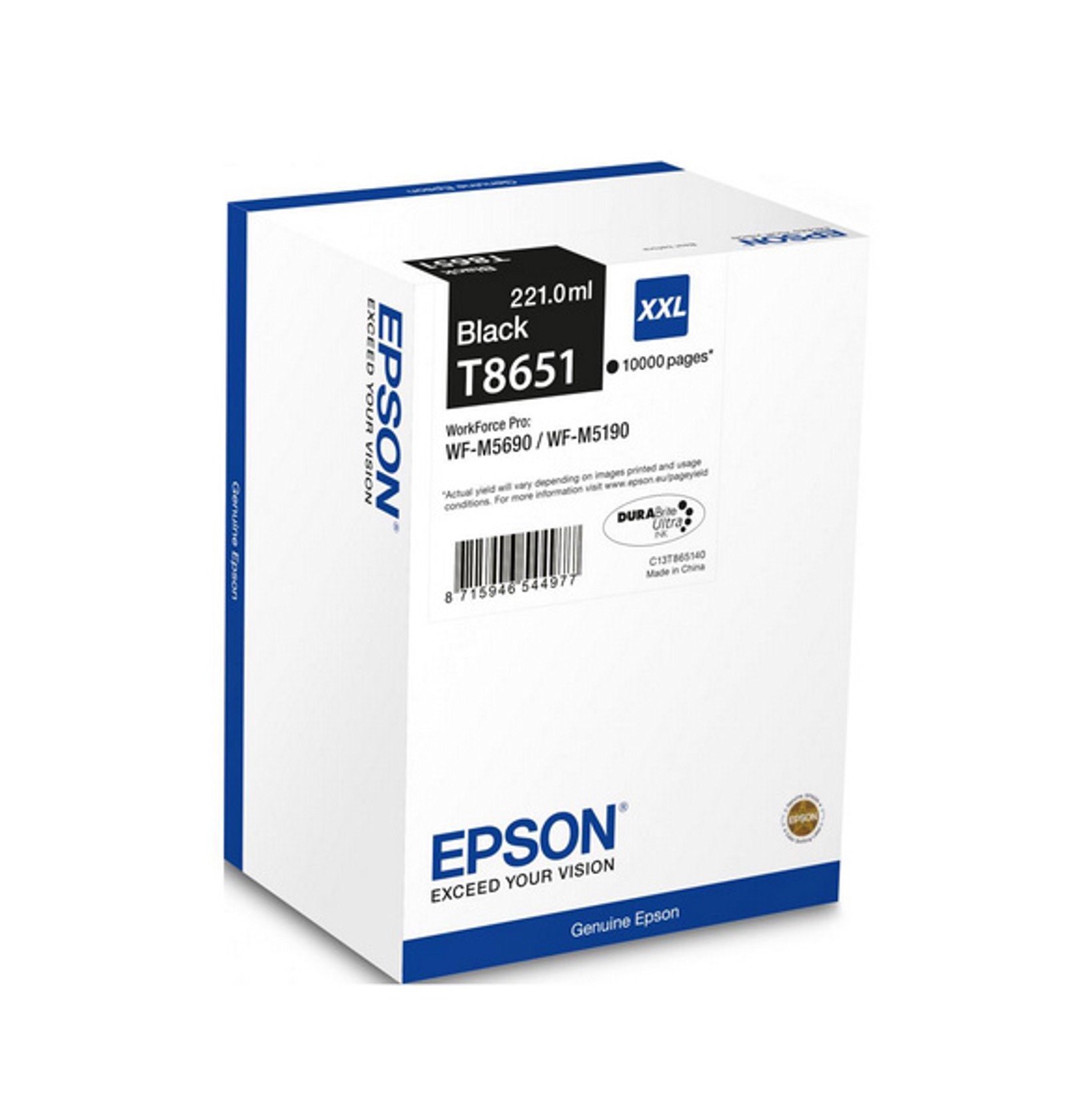 Qara rəngli XXL mürəkkəb kartrici | 221 ml tutum | 10,000 səhifə resurs | Piqment əsaslı mürəkkəb | Epson WorkForce WF-M5190/5690 ilə uyğun | Yüksək məhsuldarlıq və aydın çap keyfiyyəti.