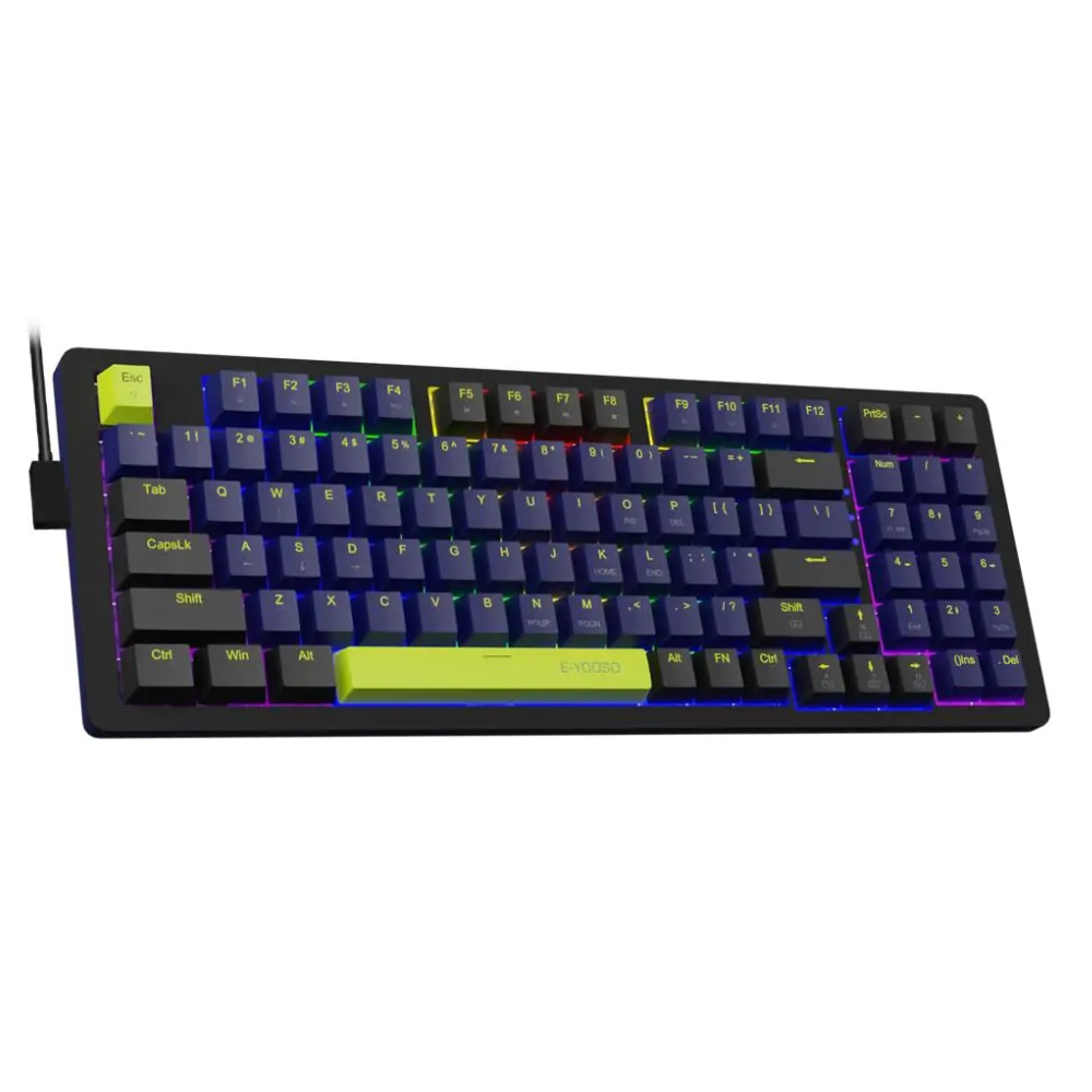 E-YOOSO Z94 — funksionallıq və kompaktdılığı birləşdirən 94 düyməli mexaniki klaviaturadır. Oyunçular, proqramçılar və ofis istifadəçiləri üçün ideal seçim olan bu model, hot-swappable switch sistemi, şəffaf korpus dizaynımonoxrom işıqlandırma ilə fərqlənir. 85%-lik kompozisiyaya malik layout həm oxlar, həm də rəqəm blokunu saxlayaraq tam ölçülü klaviaturanın rahatlığını daha az yer tutan formatda təqdim edir.